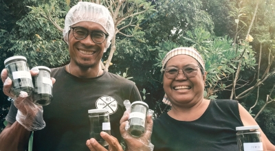 The first product to be launched was the Good Karma Smoothie – a support program developed by some restaurants in Bali. Each restaurant created its signature smoothie recipe containing an ocean-fresh Sea Moss Protein Cube that they buy directly from the local seaweed farmers’ farm-to-table style. The Sea Moss Protein Cube contains three of the most protein-, and nutrient-rich seaweeds in the world plus some Moringa making it a nutrient bomb. The program started with the first 10 member restaurants who developed the concept and the local seaweed farming family of I Wayan “Dollar” was made 50% profit share holder in the business representing the seaweed farmers of Nusa Lembongan.